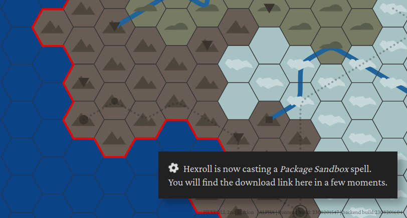 Liberate your sandbox! Download a pre-rendered snapshot file and view it offline using Hexroll Backpack. All exported content from Hexroll 2E is licensed as Creative-Commons Attribution-NonCommercial-ShareAlike and OGL.